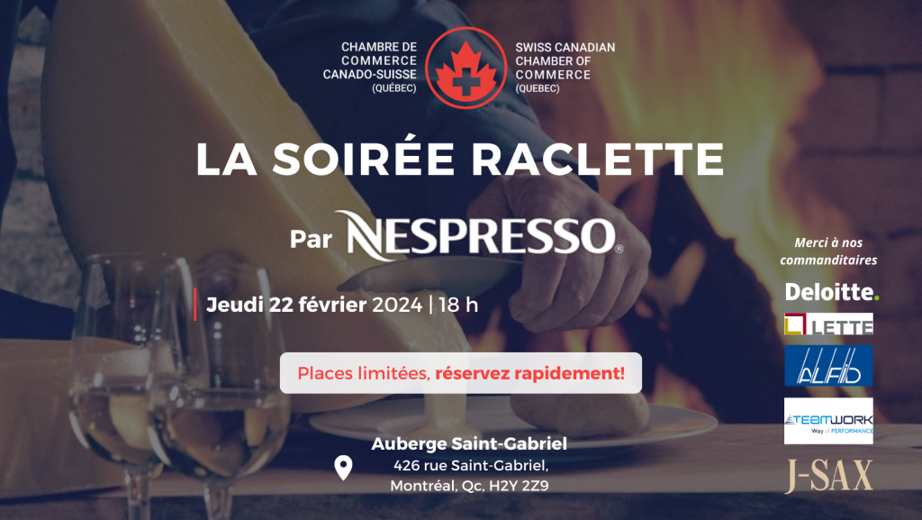 C’est avec grand plaisir que nous vous souhaitons une année 2024 exceptionnelle, car avec la Chambre de Commerce Canado-Suisse, cela vous permettra de continuer à créer un cercle d’affaires unique, qui associe réseautage et convivialité.